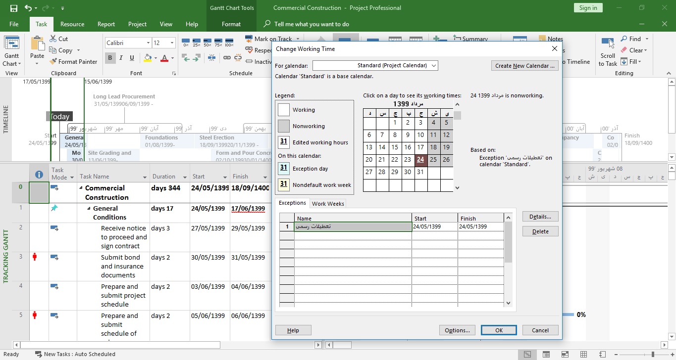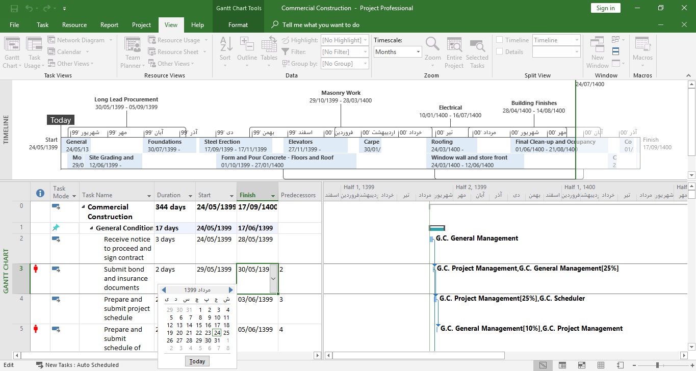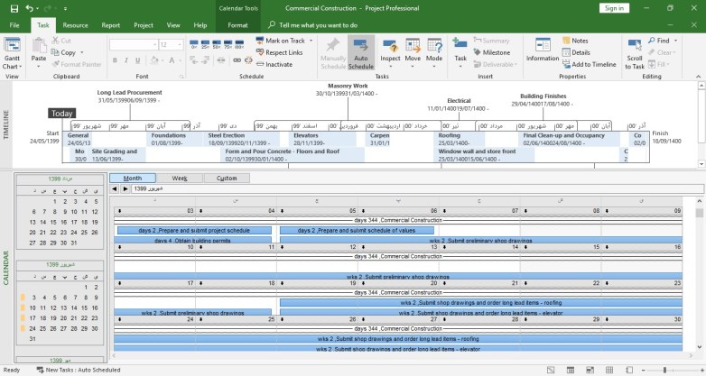 در ادامه توجه شما را به تصاویری از محیط کاربری نرم افزار Microsoft Project 2019/2021 با بهره گیری از امکانات نرم افزار پارسین پراجکت 2019/2021 جلب میکنم :